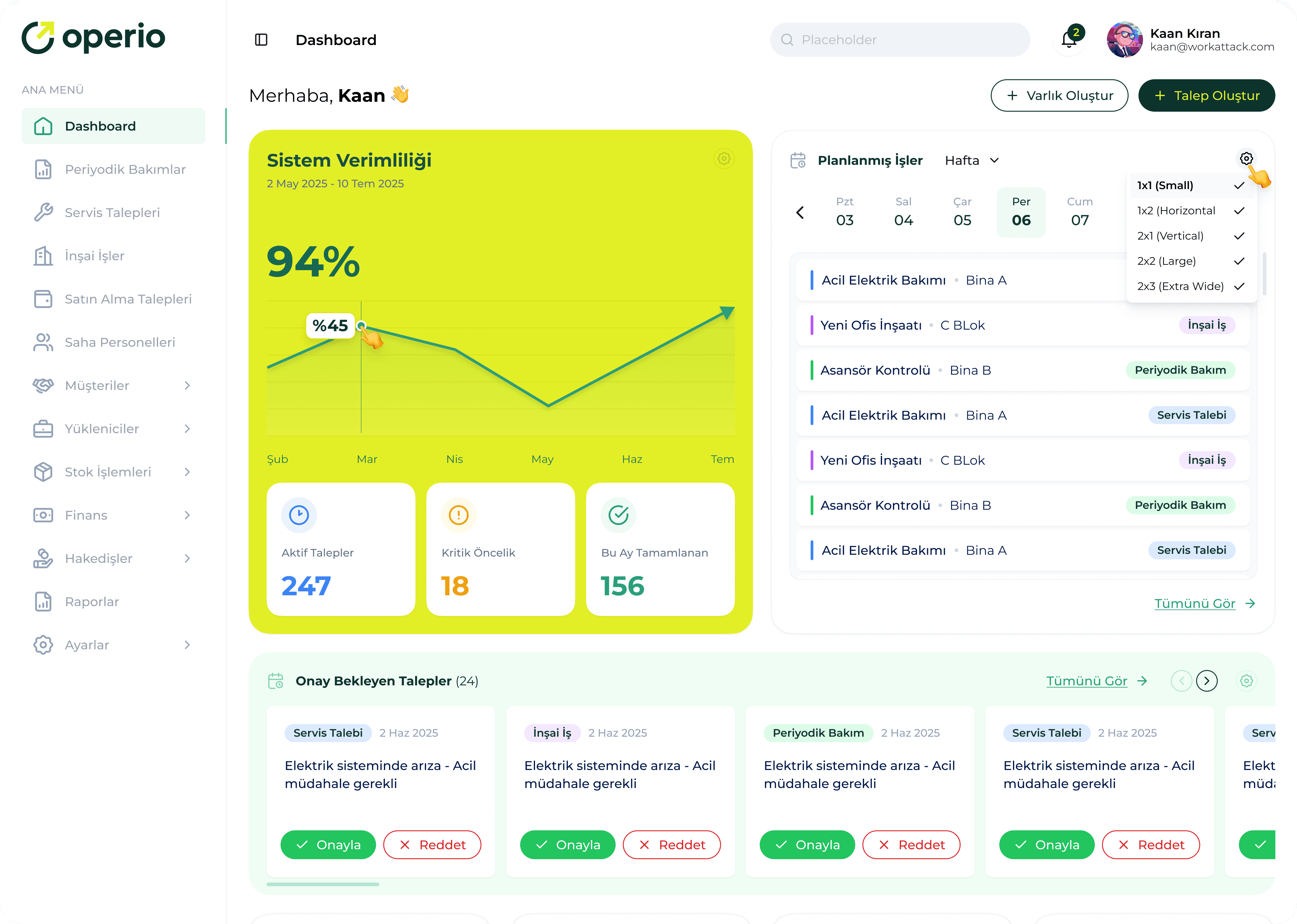 Manage your requests, work orders, maintenance, assets, suppliers, and budget processes from a single panel. Operio is an integrated CMMS solution specially developed for retail.