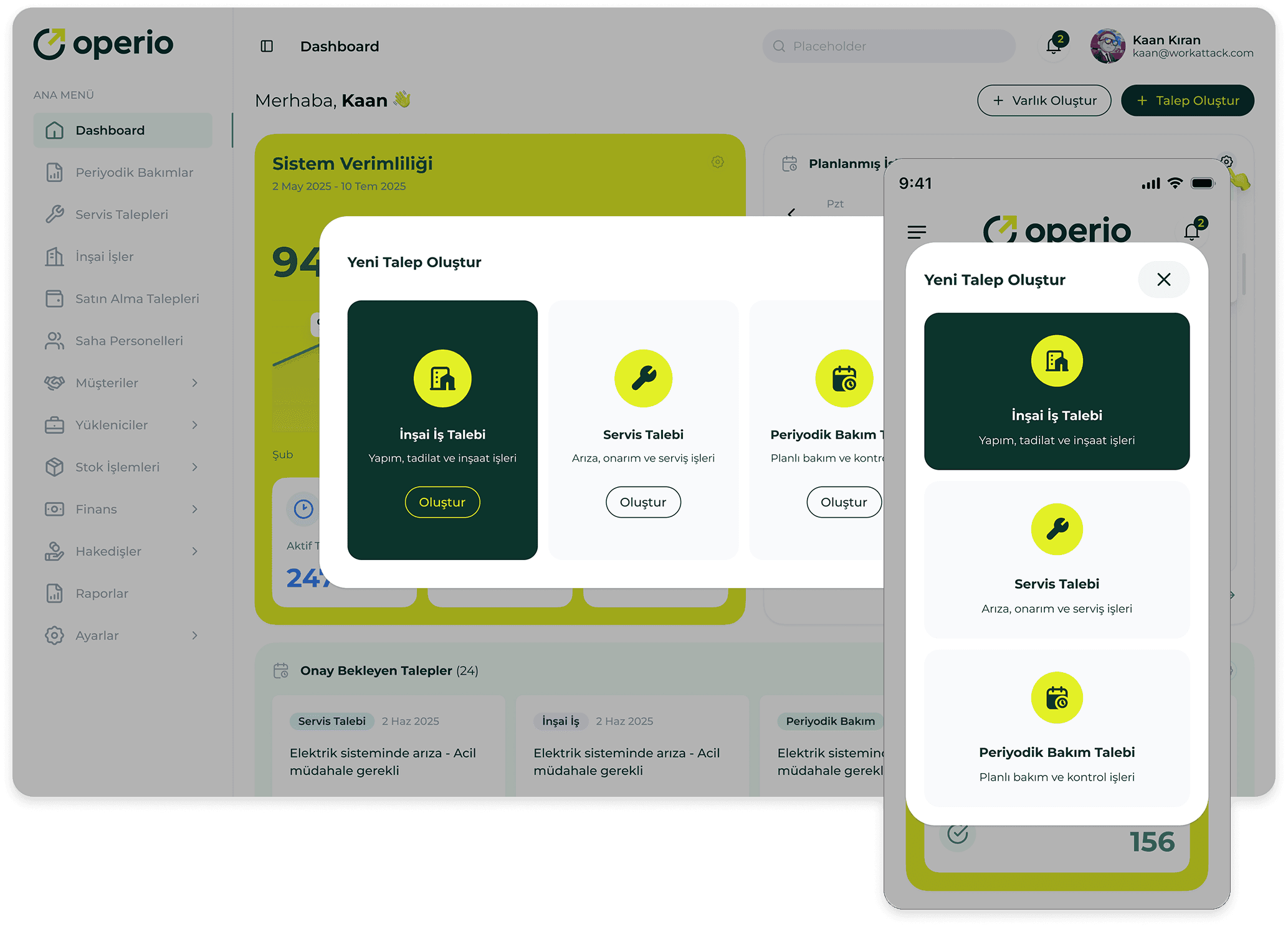 E-posta ve telefon trafiğini azaltın; iş emirleri, onaylar ve geri bildirimleri tek platformdan yönetin.